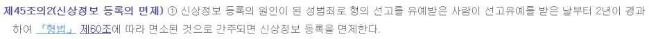 선고유예를 받은 경우에는 2년만에 신상정보등록을 면제받을 수 있게 되는 것입니다.